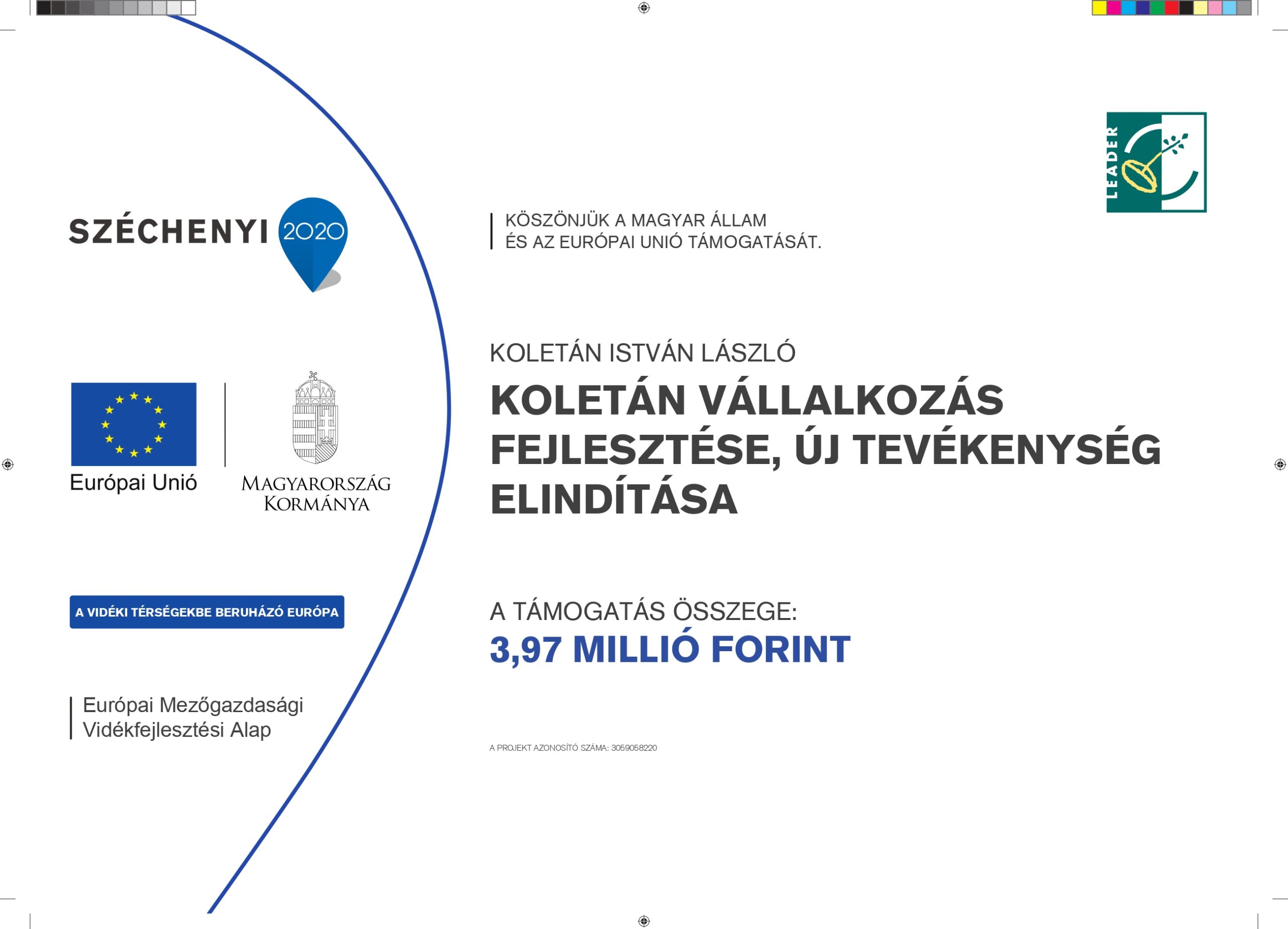 A támogatott projekt a Vidékfejlesztési Program keretén belül a Dél-Borsodi LEADER Egyesület működési területére meghirdetett, VP6-19.2.1.-20-3-17 kódszámú, Dél-Borsodi LEADER Egyesület – Mikrovállalkozások létrehozása, fejlesztése, partneri kapcsolatok erősítése keretein belül valósult meg.